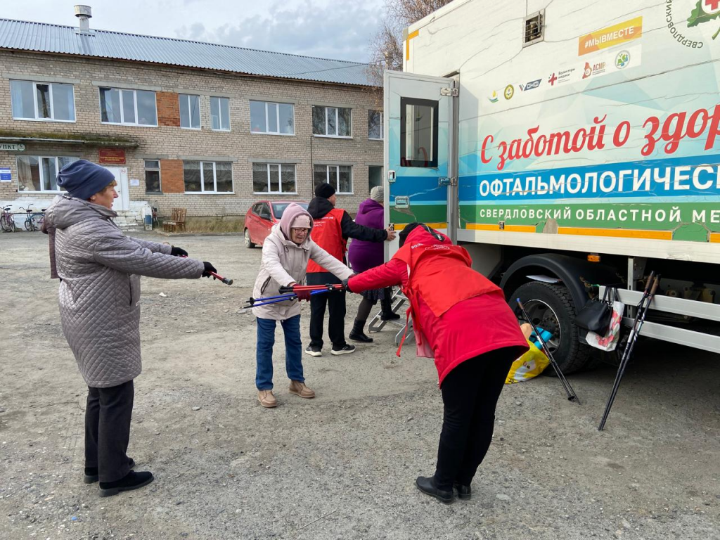 В этот раз команда медиков и волонтёров организовала для жителей уральской глубинки сразу несколько тематических активностей. Людей старшего возраста обучили навыкам северной ходьбы и правильному измерению артериального давления, можно было узнать о действиях при первых признаках инсульта и инфаркта, а также пройти мастер-класс по самообследованию молочных желёз. На симуляторе команда добровольцев Красного Креста показывала алгоритм оказания первой помощи пострадавшим в разных жизненных ситуациях.