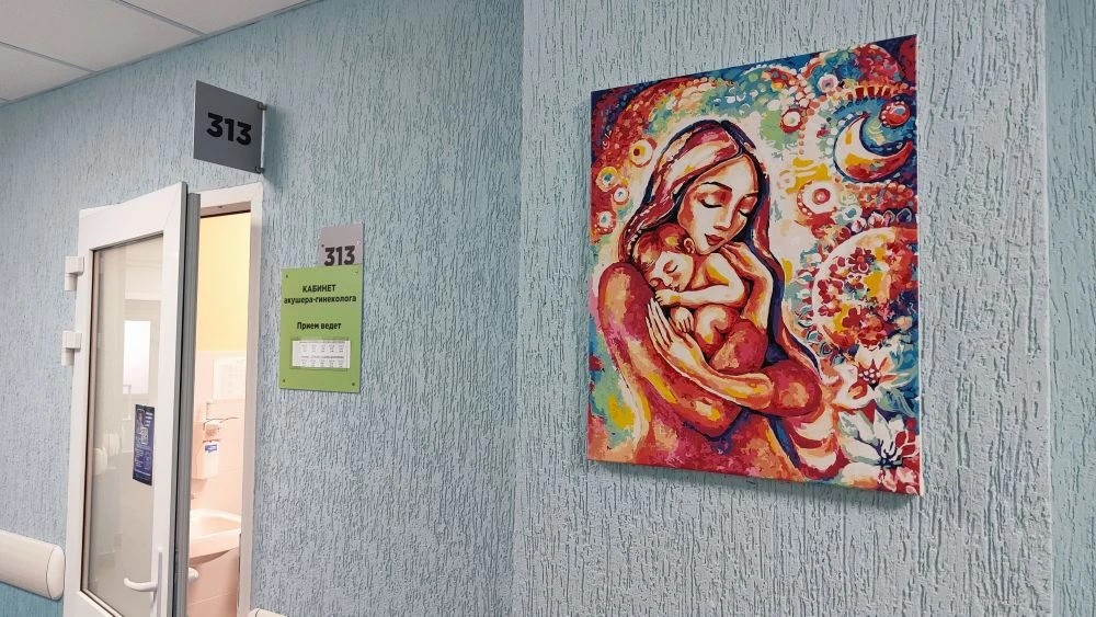 Когда после масштабного ремонта женская консультация открыла свои двери, первых гостей встретили не только уютные кабинеты, но и необычная экспозиция. Сюжеты картин выбраны с глубоким смыслом: счастливая женщина с младенцем на руках, будущая мама в окружении нежных цветов — образы, воспевающие материнство.