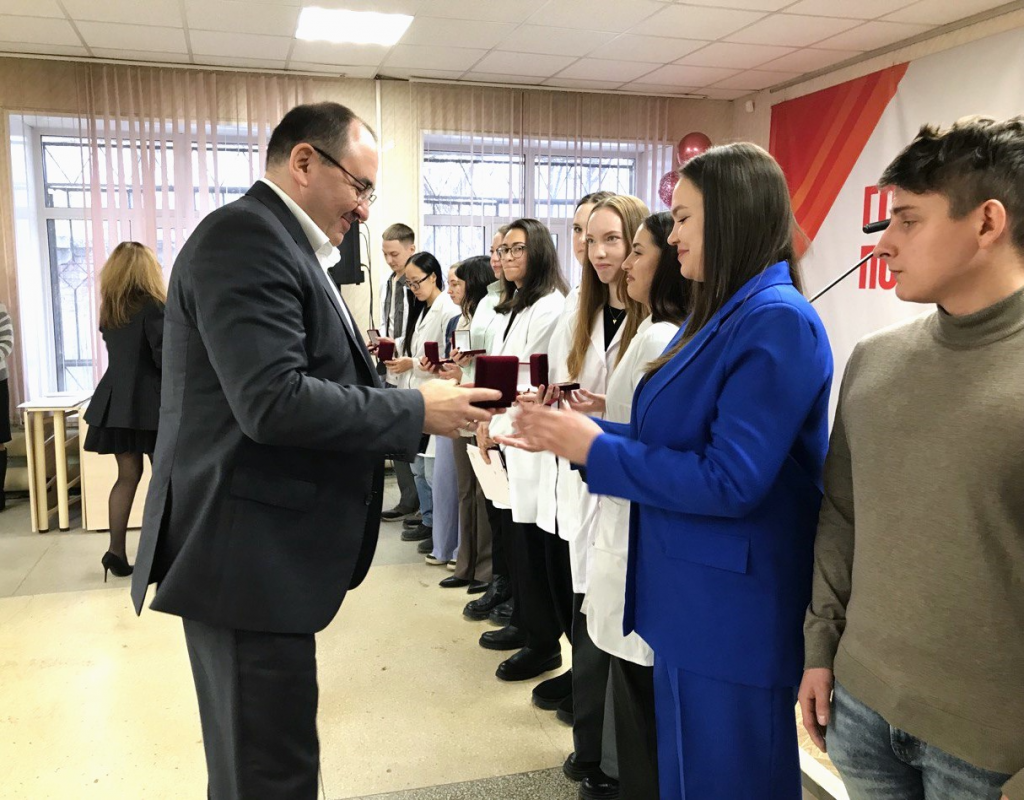 Коллектив СОКПБ по доброй традиции подготовил для своих новых коллег песни, сценки, шуточные испытания. Музыкальный номер исполнил и большой хор ординаторов первого года, которые тоже скоро станут настоящими врачами. Молодым специалистам вручили памятные знаки с логотипом областной психиатрической больницы.