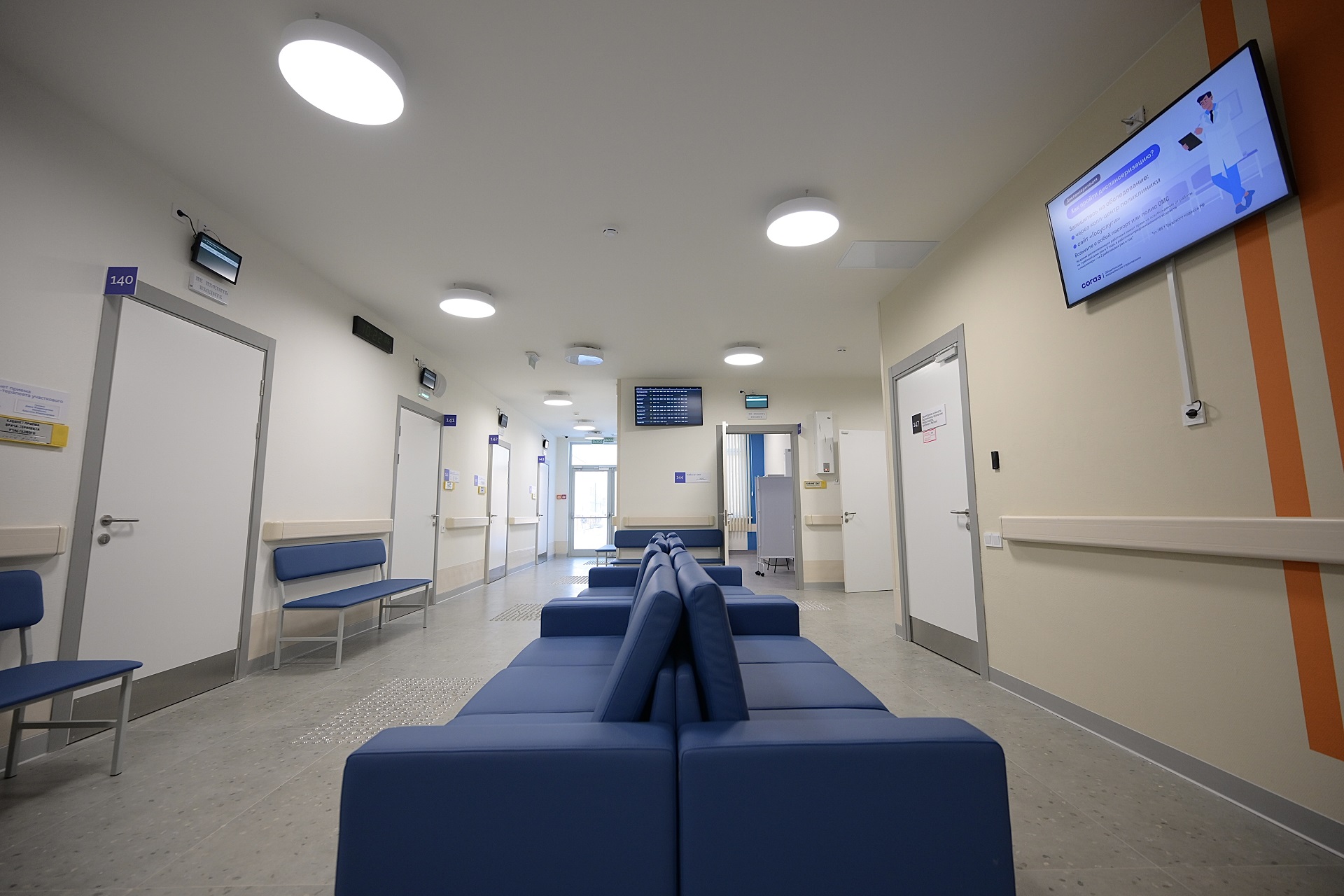 Поликлиника сможет принимать до 300 человек в сутки. Здесь будут работать терапевты, узкие специалисты, есть диагностический блок с УЗИ и ЭКГ, кабинеты профилактики, физиотерапии, диспансеризации. Для разделения потоков пациентов предусмотрен фильтр-бокс.