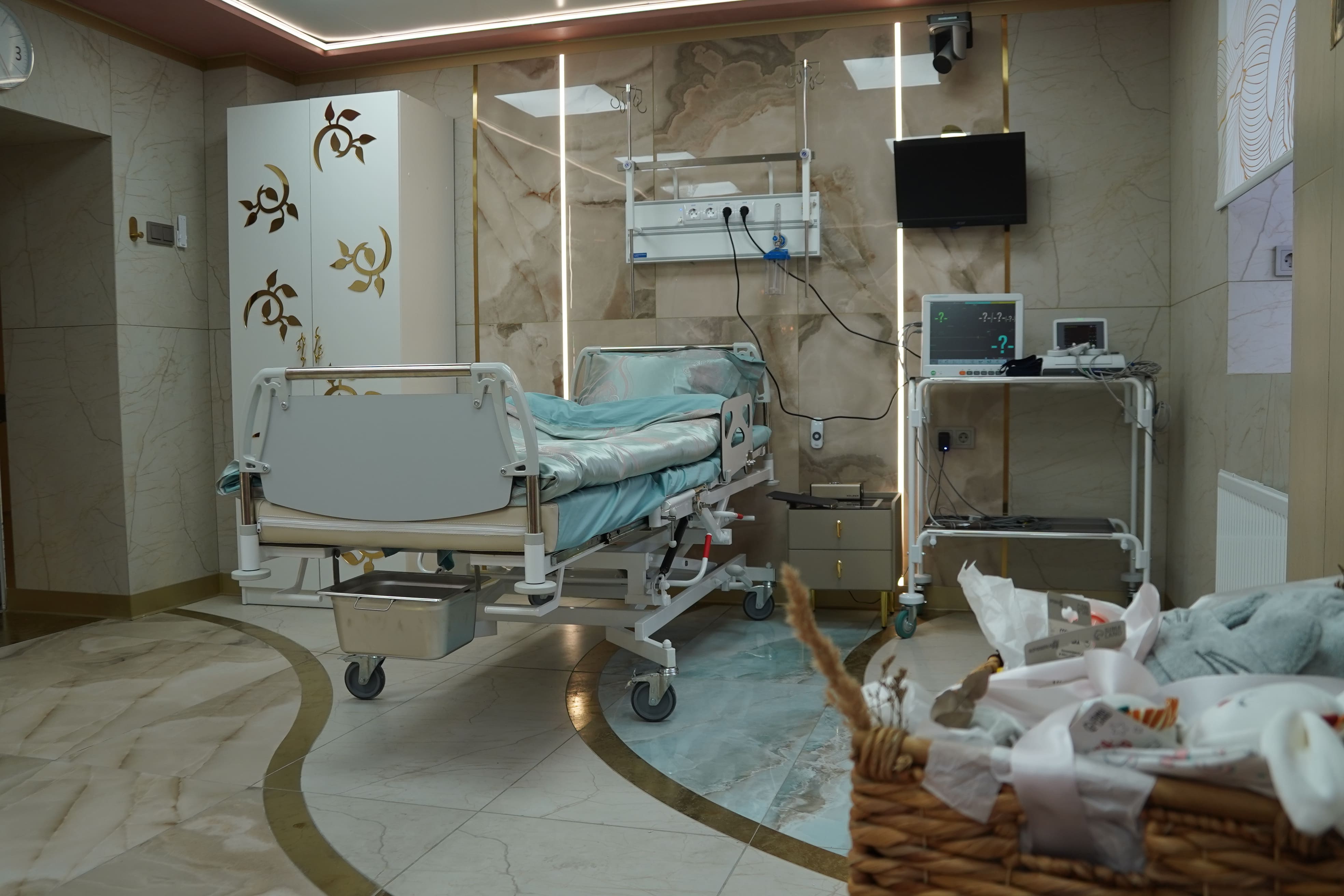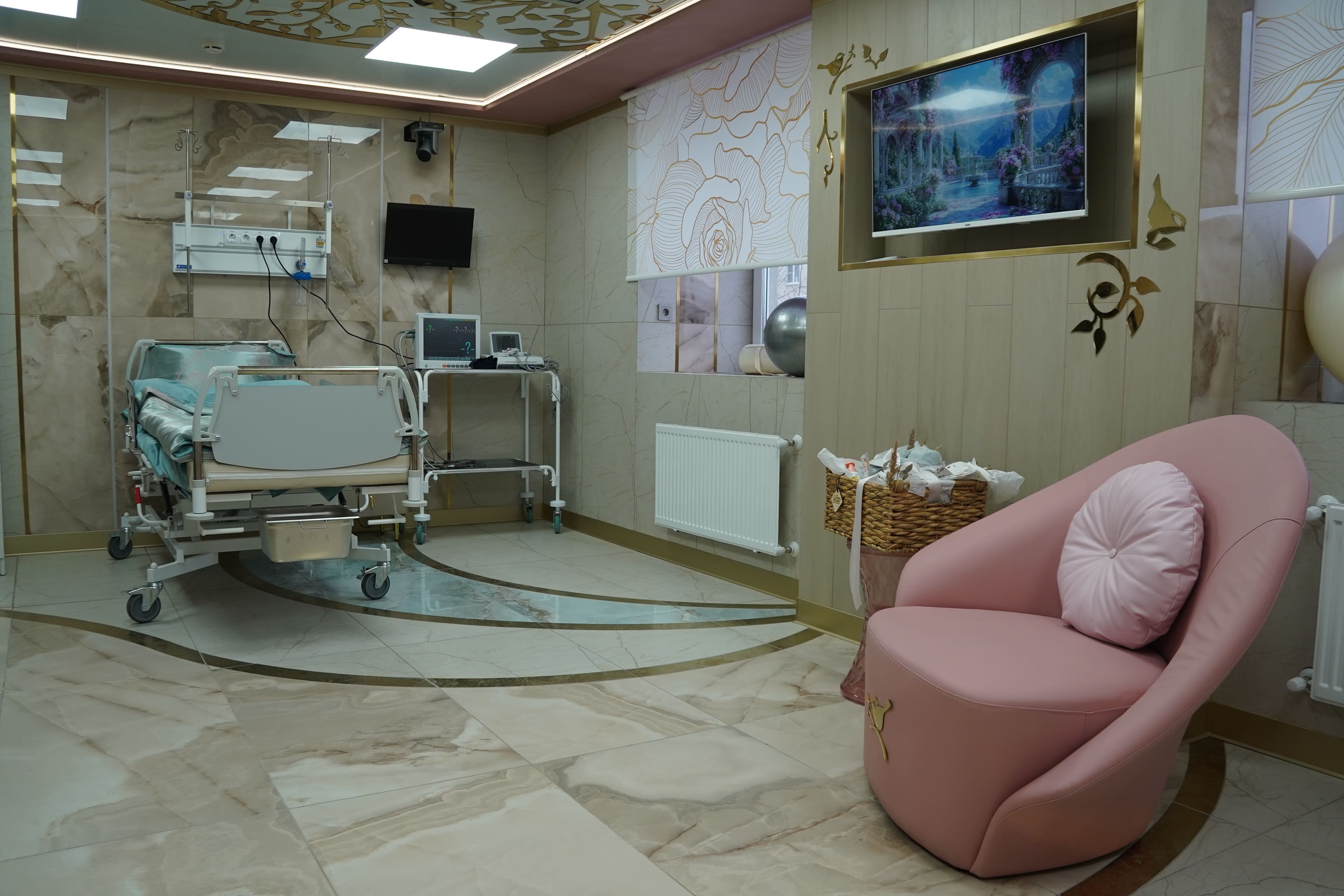 Для каждой палаты закуплена следящая аппаратура для матери и плода, новые открытые реанимационные системы для новорождённых. В палатах предусмотрены тренажёры для облегчения родовых схваток (фитболы и шведские стенки), кресла для партнёров, «умные» колонки, телеэкраны и многое другое.