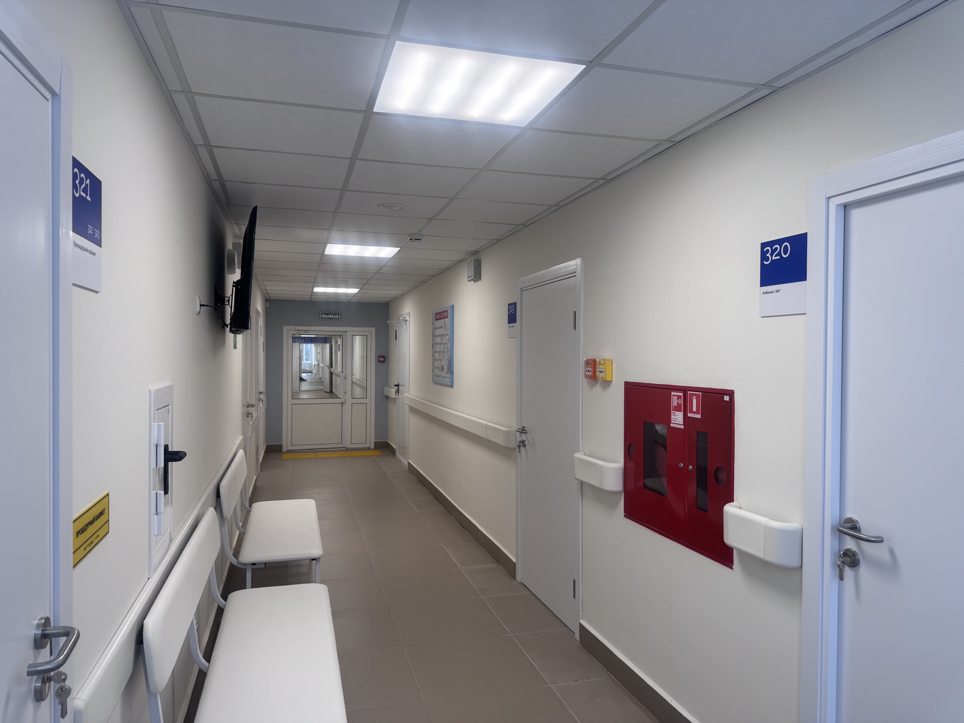 Благодаря нацпроекту преобразился и фасад здания амбулаторно-поликлинического отделения №1 на улице Металлургов, а также фасад прилегающей к нему галереи. Здание с колоннами и лепниной 1959 года постройки теперь радует глаз светлым тоном. На втором этаже поликлиники обновили инженерные сети, пол и окна, отремонтировали кабинеты и холл. Общий объём финансирования на этом объекте составил 47,5 миллиона рублей.