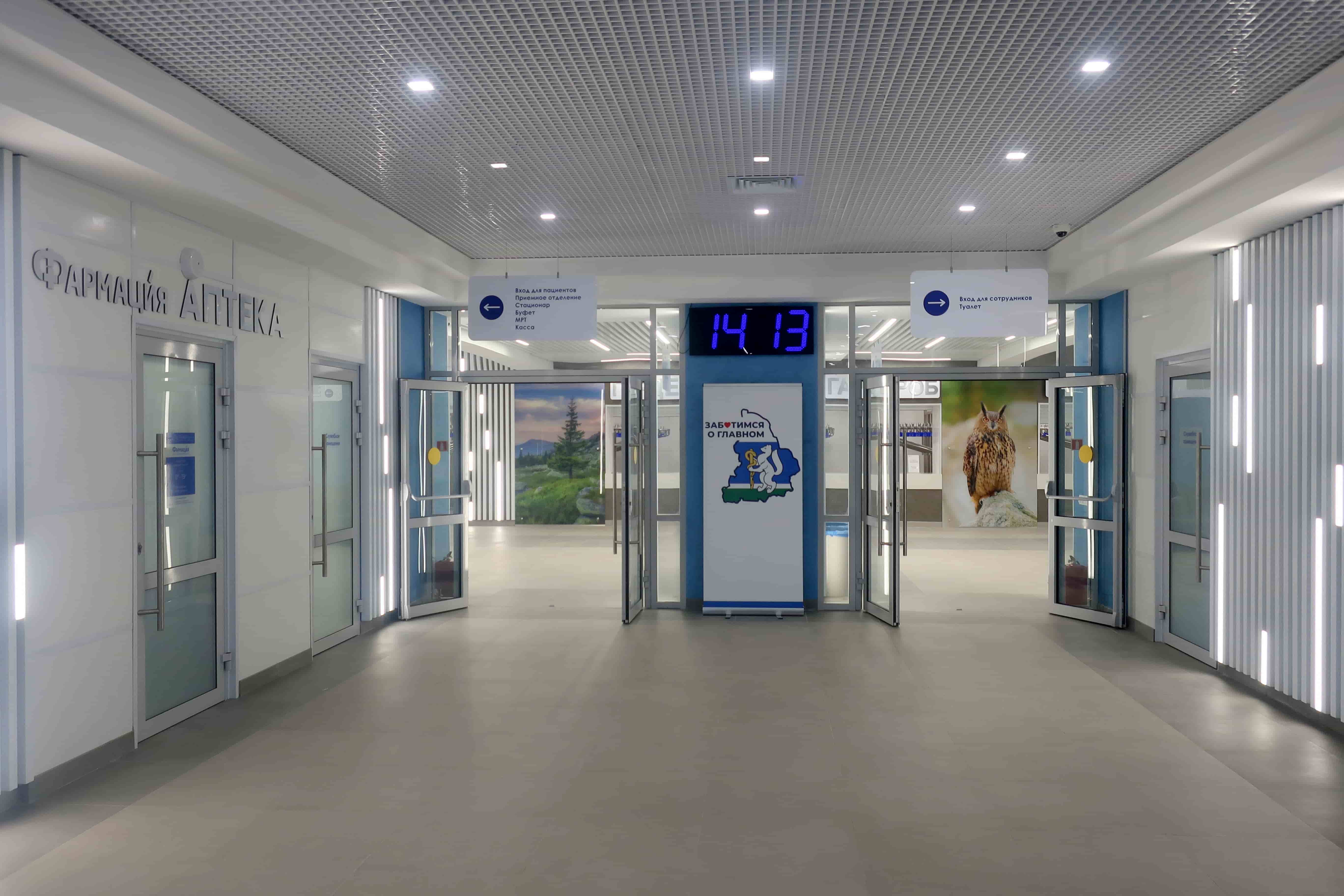 Также силами подрядной организации и технических служб больницы в центральном холле площадью около тысячи квадратных метров созданы максимально комфортные условия для пребывания, общения и отдыха посетителей, пациентов и персонала медучреждения. Все помещения оборудованы современной системой приточно-вытяжной вентиляции и кондиционирования воздуха. Установлена новая витражная система и заменены оконные и дверные конструкции, в том числе входные группы. Проведена перепланировка помещений, а также работа по замене кровли и всех инженерных коммуникаций. В ходе капремонта медучреждение получило новую вывеску и наружное освещение. Стоит отметить, что при проведении работ использовались современные материалы, по большей части — отечественного производства. Главной доминантой обновлённого пространства стало панно с пейзажами и представителями флоры Среднего Урала, которые создают уютную атмосферу в учреждении здравоохранения.