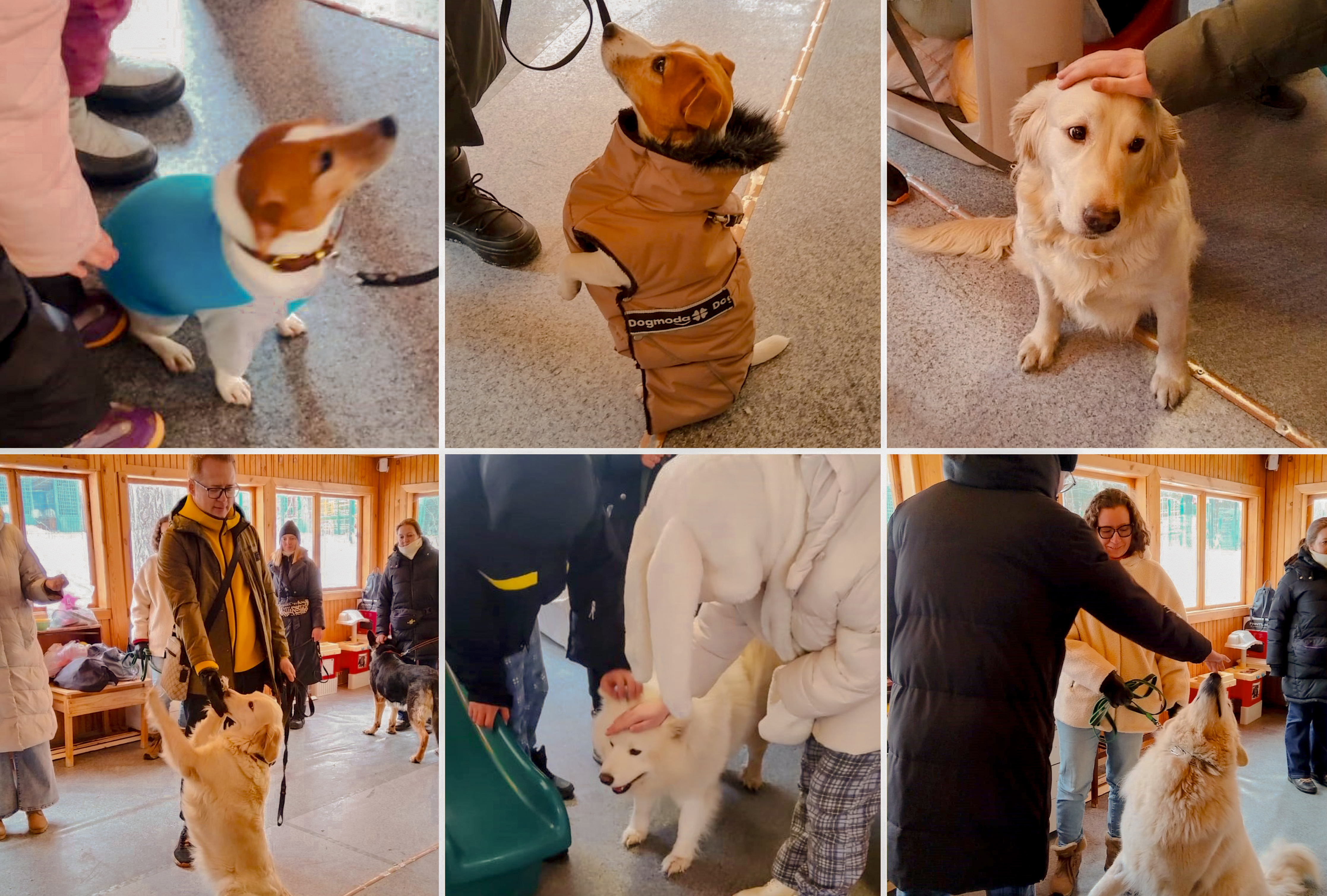 Команда АНО социально-психологической реабилитации «Краски жизни» привезла в клинику золотистого ретривера Миру, восточно-европейскую овчарку Чару, джек-рассел-терьера Теслу, пиренейскую горную собаку Ягоду и самоеда Клыка. Это не просто очень добрые собаки — они, можно сказать, имеют университетское образование, а кто-то и два.