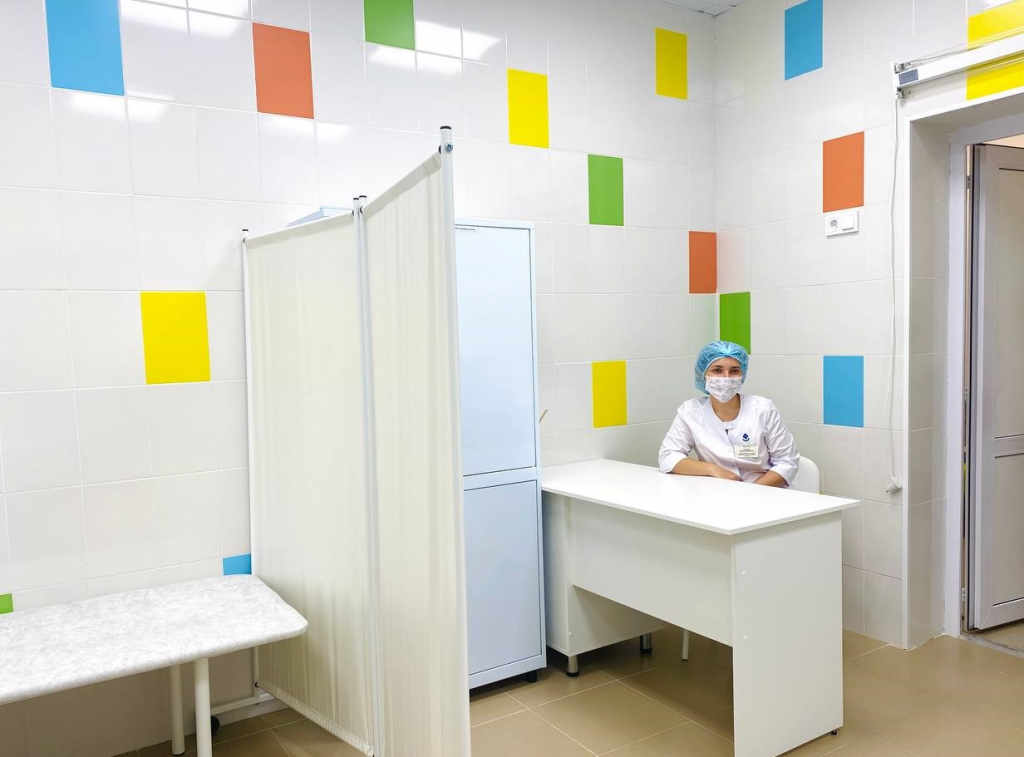 В помещении сделали перепланировку, оптимизировали пространство, обновили кабинеты приёма, заменили инженерные сети, электрику и сантехнику, выполнили общестроительные и отделочные работы, полностью заменили двери и полы, выполнили монтаж подвесного потолка. Кабинеты оснастили новой медицинской мебелью.