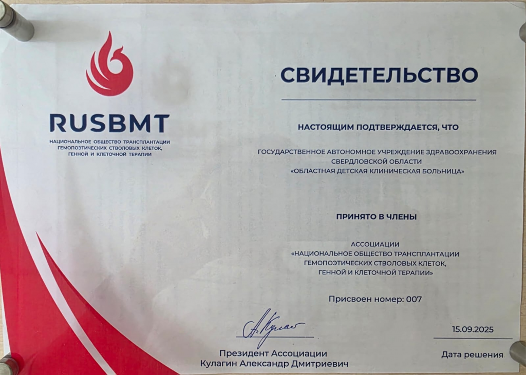 Напомним, что в сентябре 2025 в Российской Федерации была создана первая в истории страны Ассоциация трансплантологов гемопоэтических стволовых клеток. Областная детская клиническая больница вошла в неё первой из уральских трансплантационных клиник под номером семь.