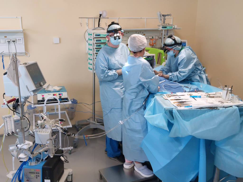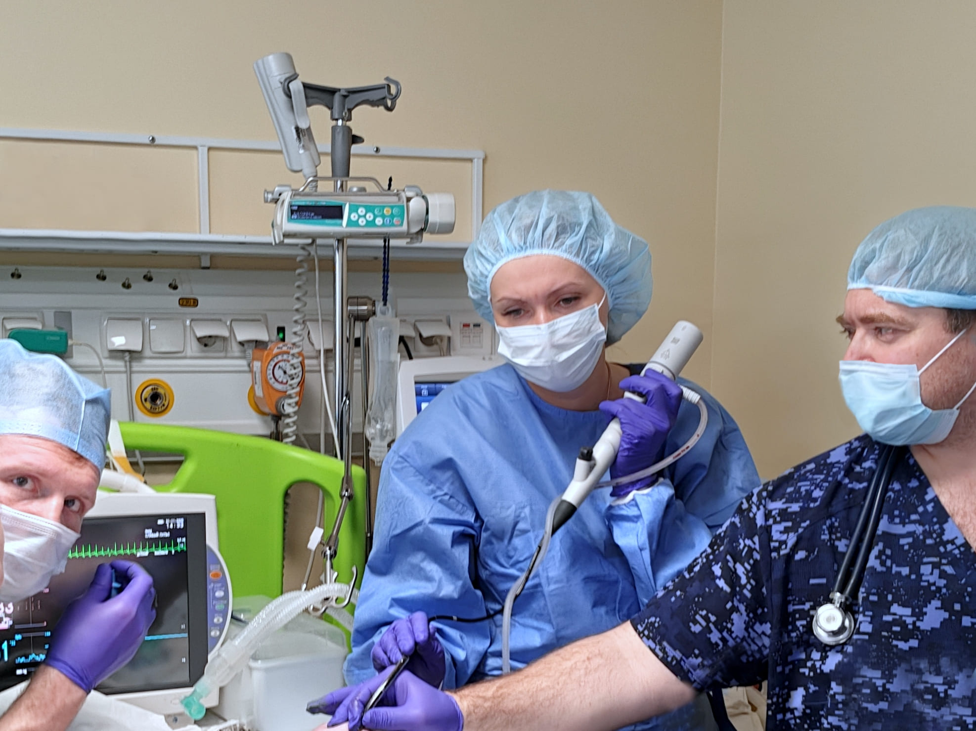 В СОКБ №1 врачи выполнили маленькому пациенту КТ и на снимках увидели участок сужения в левом бронхе. Врач эндоскопического отделения Андрей Бабак с помощью сверхтонкого бронхоскопа обнаружил инородное тело. Для выполнения операции прибыла торакальный хирург Областной детской клинической больницы Татьяна Мликова с медсестрой. Заведующий отделением детской кардиохирургии СОКБ №1 Константин Казанцев, которому ассистировала врач Дарья Гончарова, сформировал доступ для проведения веноартериальной ЭКМО, детские анестезиологи-реаниматологи Евгений Тарасов и Андрей Тюльпин подключили пациента к аппарату. Затем с помощью специальных инструментов медики извлекли инородное тело. Время вмешательства составило не более 30 минут.