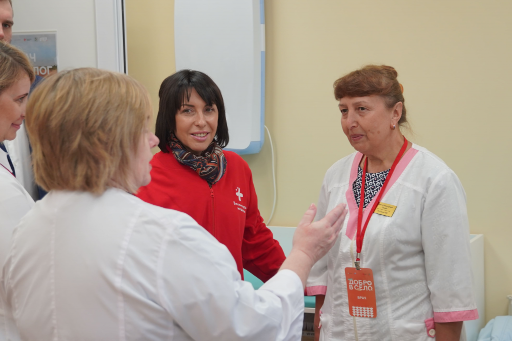 Основной целью проекта «Добро в село», который реализуется в рамках нацпроектов «Молодёжь и дети» и «Продолжительная и активная жизнь», является содействие практическому здравоохранению в повышении качества и доступности медицинской помощи для населения, медицинской грамотности сельчан и жителей отдалённых территорий. Волонтеры-медики помогают специалистам лечебных учреждений проводить диагностические осмотры, реализуют мероприятия, направленные на мотивацию к здоровому образу жизни и профилактику социально значимых заболеваний, участвуют в благоустройстве сельских подразделений больниц, организуют профориентационные мероприятия в детских садах и школах.