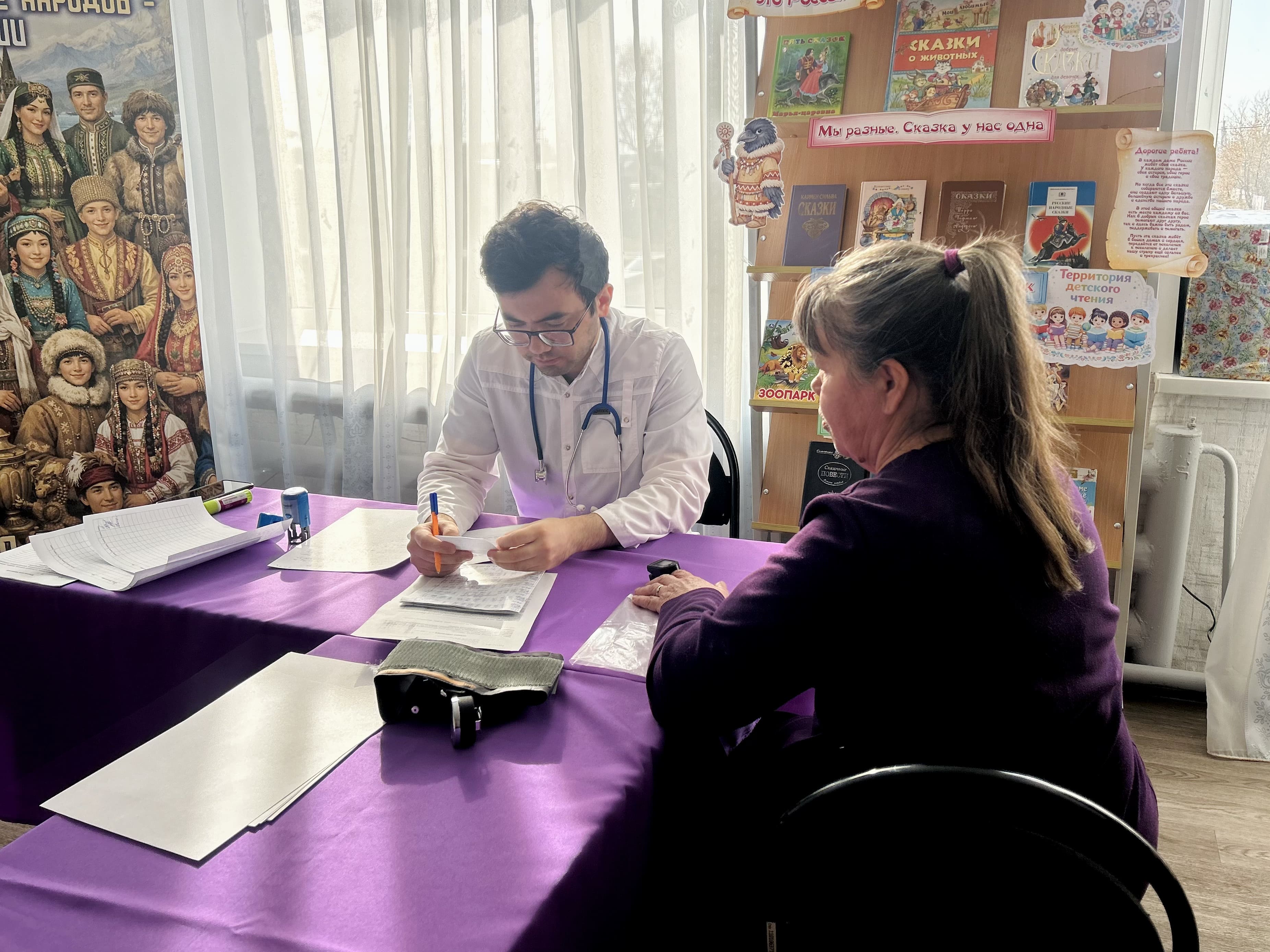 Также для сельчан работали передвижные флюорографический, маммографический и офтальмологический комплексы с современным оборудованием, где можно было пройти диагностику и получить консультацию специалистов.