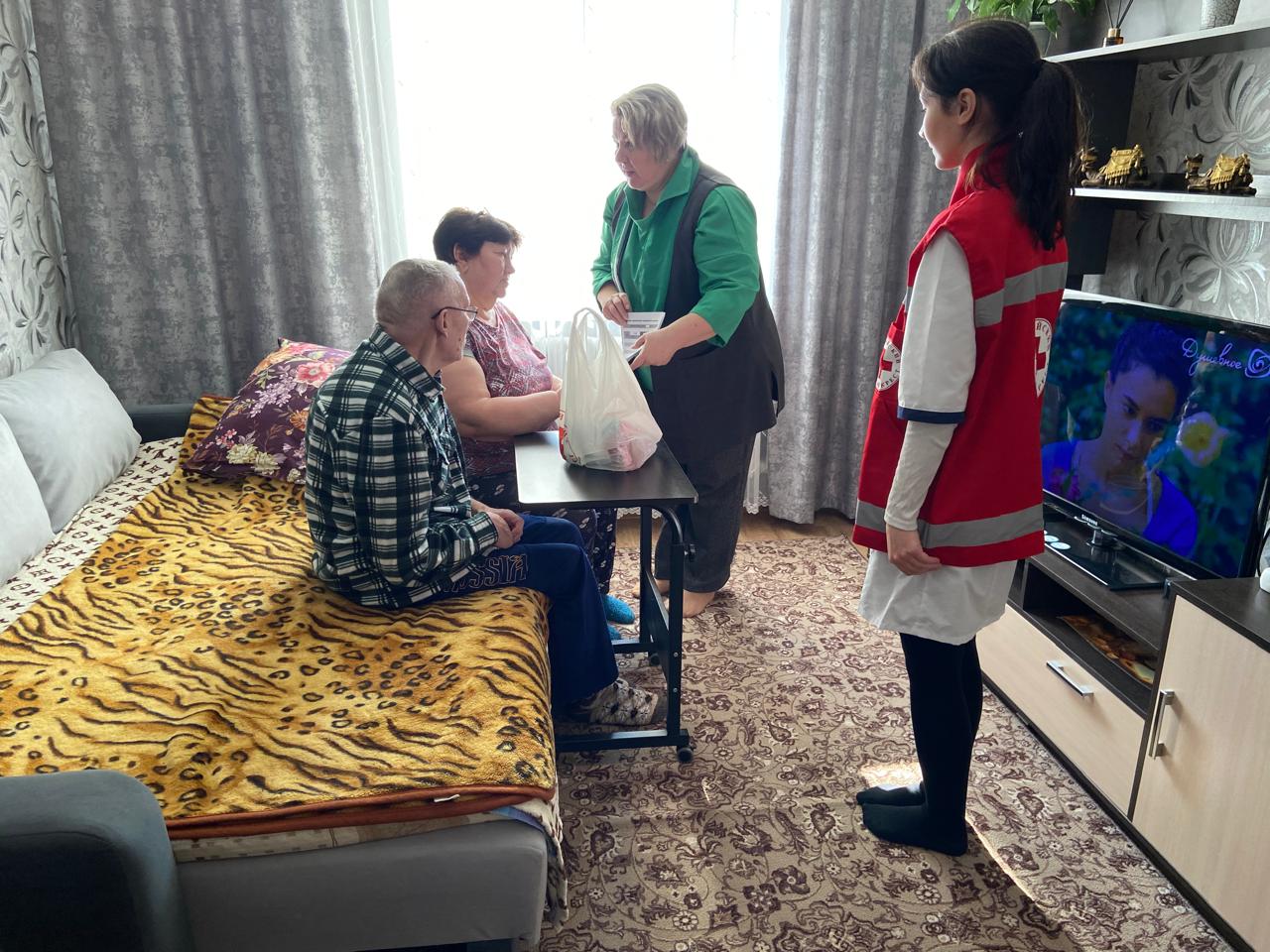 Добровольцы Красного Креста провели патронаж семи семей социального риска и двух тружеников тыла Великой Отечественной войны и вручили им гуманитарную помощь.