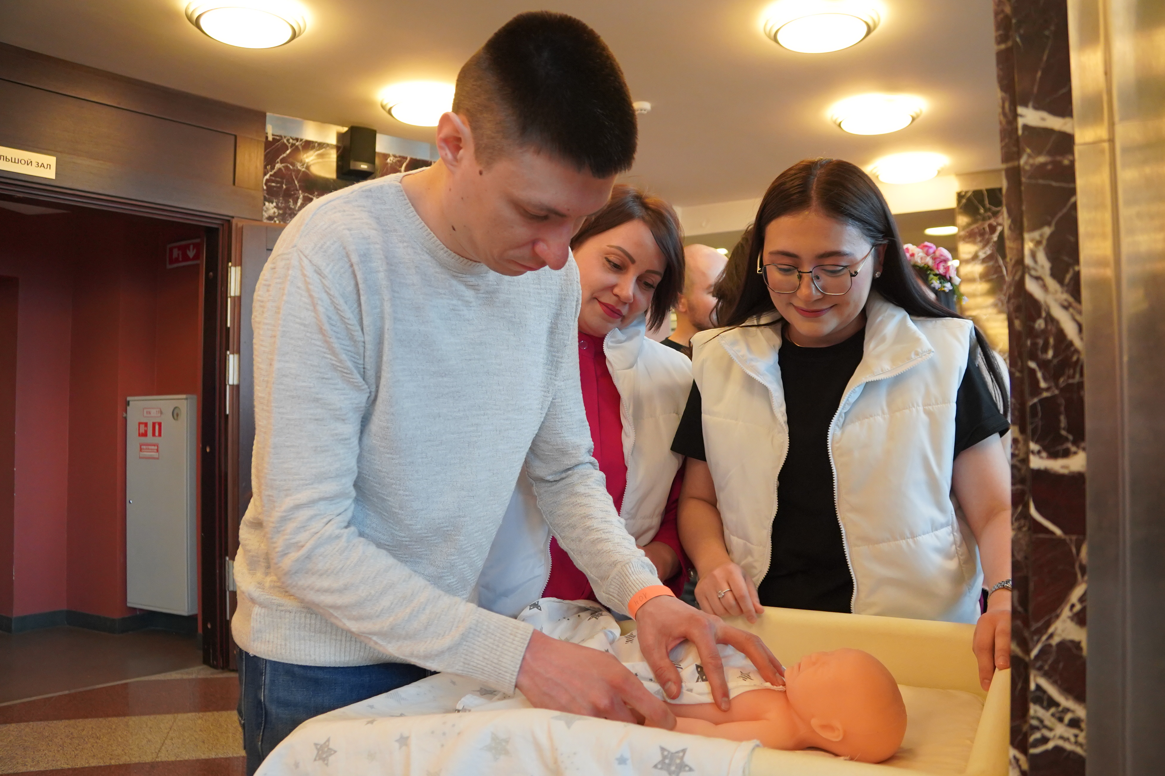 Медики Екатеринбургского клинического перинатального центра обучили свыше 50 будущих пап пеленанию новорождённых малышей