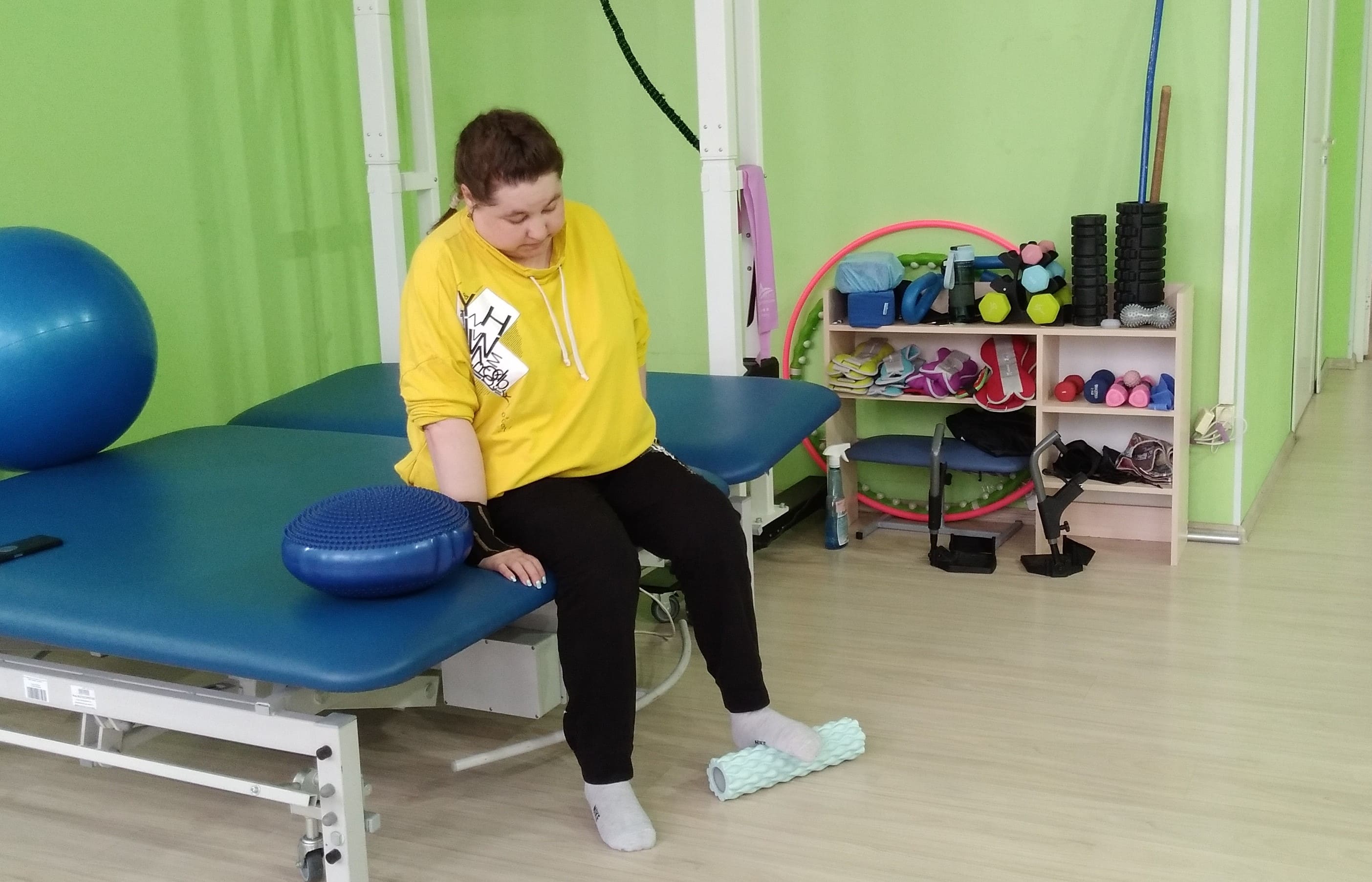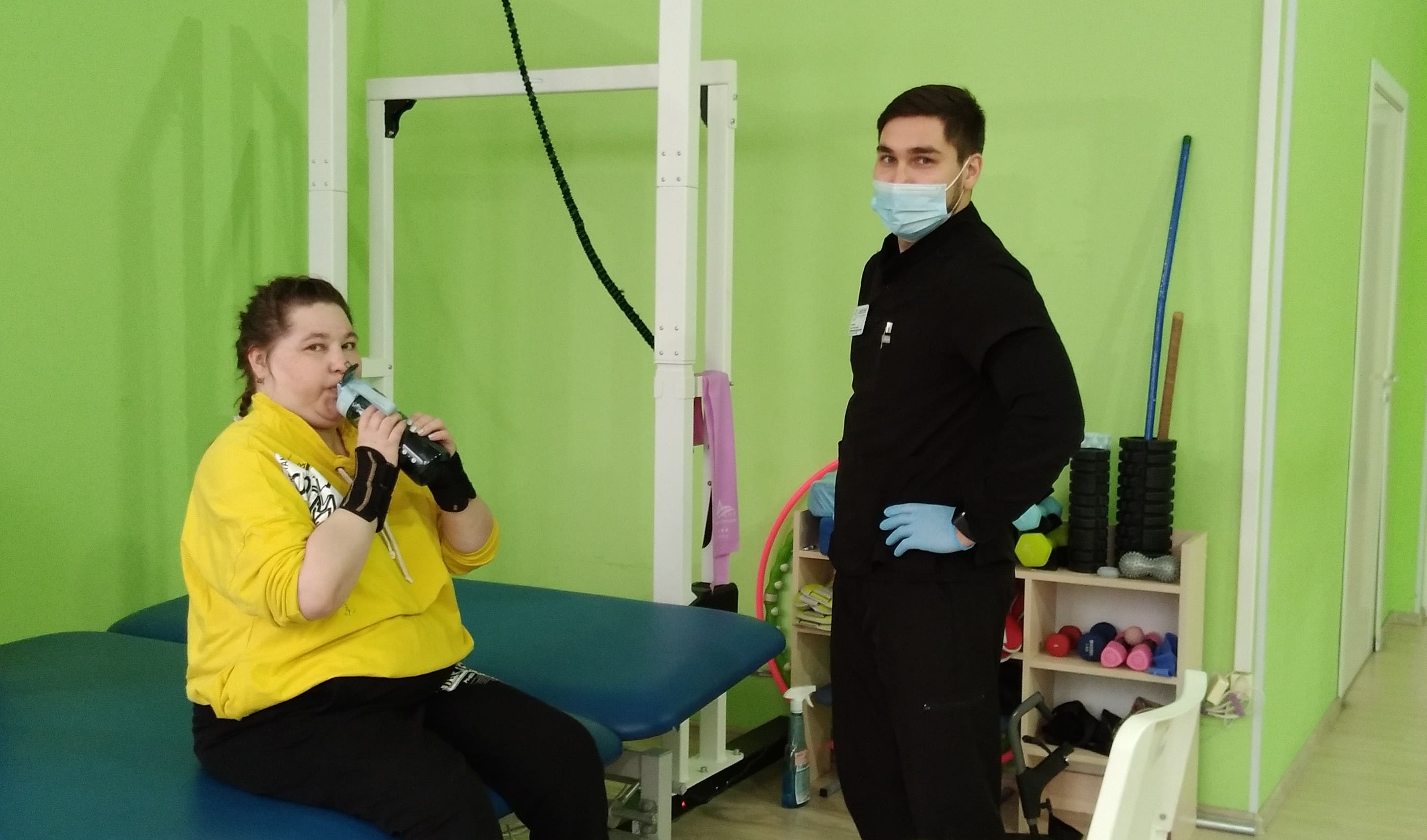 «С пациенткой работали над восстановлением подвижности рук и ног. Она научилась самостоятельно присаживаться на кровать из положения лёжа и удерживать баланс, сидя. Самое большое достижение — при поддержке ассистента Ульяна может стоять на ногах до одной минуты, даже пробует делать шаги», — рассказал инструктор-методист ЛФК Антон Белозерцев.