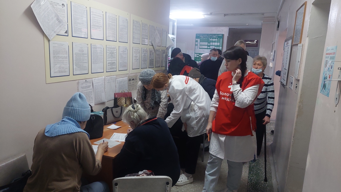 В работе с пациентами врачам помогали волонтёры: студенты и преподаватели Ревдинского филиала Свердловского областного медицинского колледжа. Будущие фельдшеры и медсёстры показывали пожилым людям, как заполнять анкеты перед обследованием, сопровождали их до кабинетов, помогали в маршрутизации, находились на врачебных приёмах, заполняли документы.