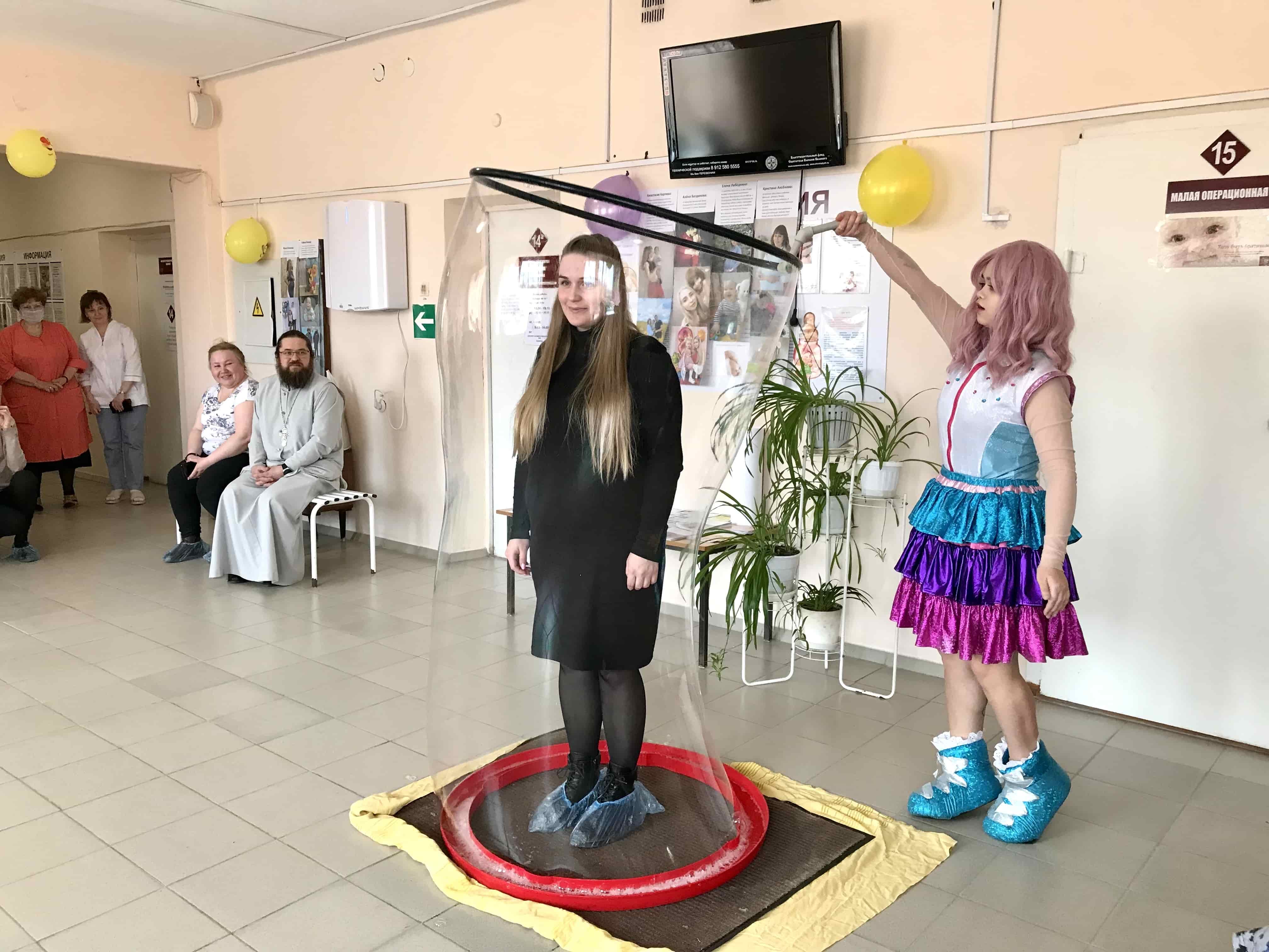 Завершился День беременных номером «Пузырь желаний»: каждая будущая мама могла загадать заветное желание внутри огромного мыльного пузыря.