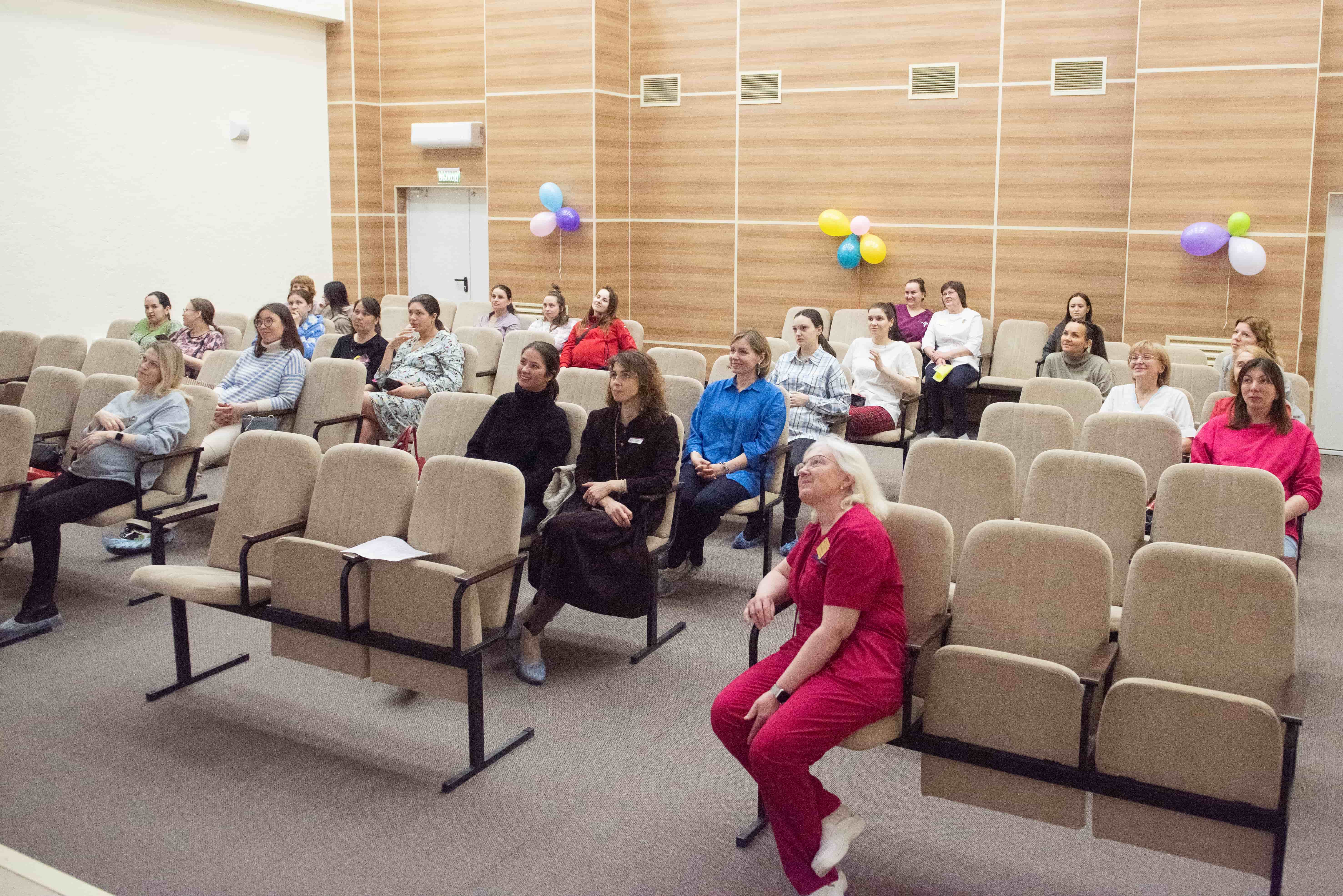 В актовом зале просторного родильного дома Верхнепышминской центральной городской больницы провели встречу будущих мам с профильными специалистами, семьями, которые имеют опыт счастливого родительства, а также активными бабушками из числа сотрудников медучреждения.