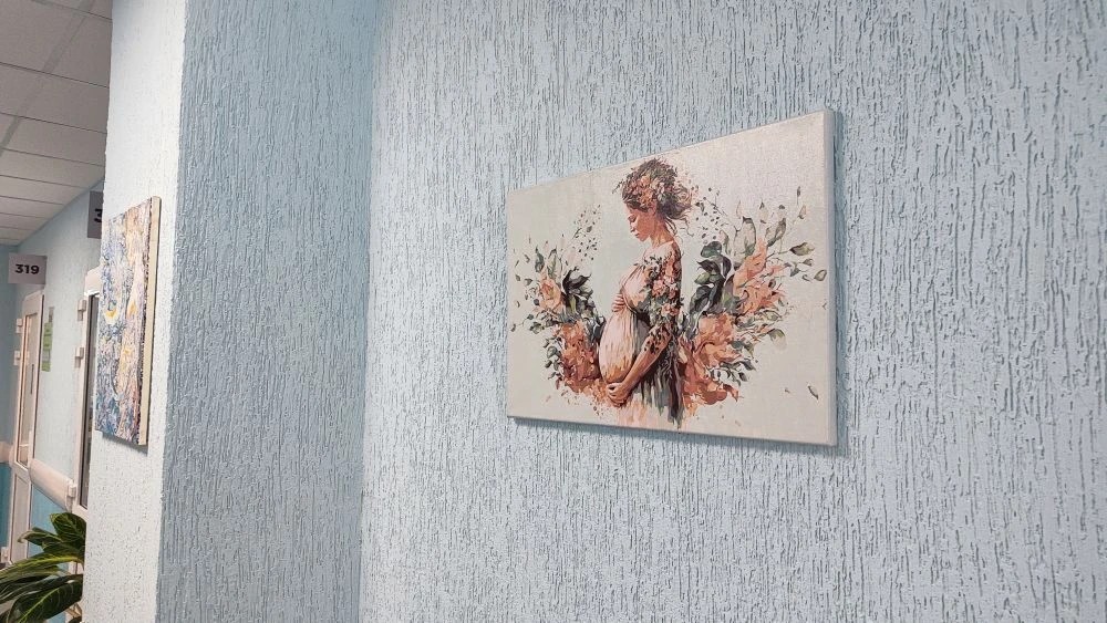 Когда после масштабного ремонта женская консультация открыла свои двери, первых гостей встретили не только уютные кабинеты, но и необычная экспозиция. Сюжеты картин выбраны с глубоким смыслом: счастливая женщина с младенцем на руках, будущая мама в окружении нежных цветов — образы, воспевающие материнство.