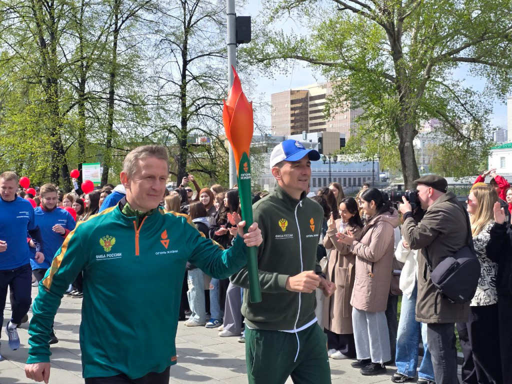 Екатеринбург 12 мая принимает Всероссийскую эстафету факела «Огонь жизни», которая объединяет все регионы страны. Целью акции является привлечение добровольцев в Федеральный регистр доноров костного мозга, чтобы увеличить шансы на спасение пациентов с лейкемией и другими тяжёлыми заболеваниями. Эстафету запустили ФМБА России и Благотворительный фонд «Импакт», генеральный партнёр мероприятий — Фонд поддержки социальных инициатив «Огонь жизни».