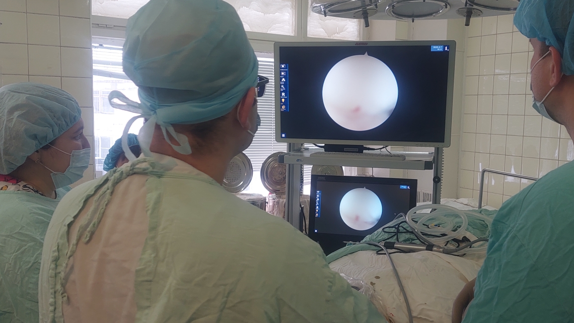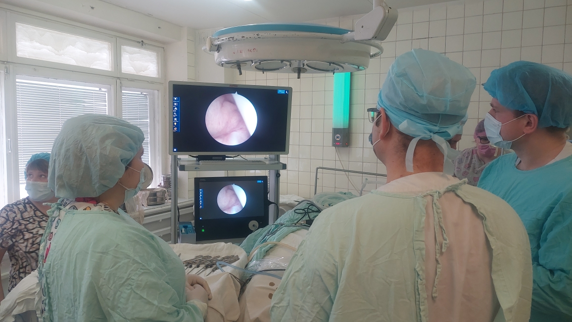 «У пациентки были блокады в суставе. В ходе вмешательства хирург удалил повреждённый участок мениска, и всё, боль купирована. Доступ к нужному участку сустава выполнен через два небольших прокола в колене, операция длилась около получаса. Оперировал женщину высококвалифицированный специалист, заведующий отделением травматологии в Екатеринбургском госпитале МВД Максим Саушкин, который с недавнего времени по совместительству работает и у нас», — рассказал заведующий отделением травматологии Первоуральской городской больницы Малик Мукменов.