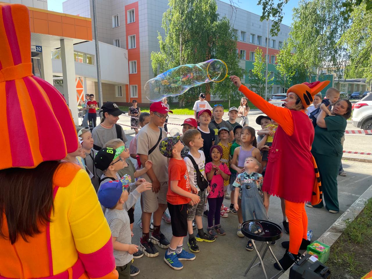 Площадка у детской поликлиники Верхнепышминской центральной городской больницы заиграла всеми красками лета: в канун Дня защиты детей здесь провели увлекательное шоу. Мероприятие началось с дружной зарядки в компании ростовых кукол — так медики напомнили маленьким горожанам о пользе физических нагрузок на свежем воздухе, ведь каникулы и тёплая погода способствуют здоровому образу жизни. Под радостные возгласы в небо взмывали гигантские мыльные пузыри, переливаясь всеми цветами радуги, а музыка манила танцевать, прыгать и веселиться от души.