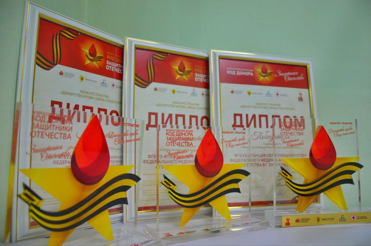 Станция переливания крови ФМБА России в Екатеринбурге стала победителем в номинации «Вместе за Победу. Регион как одна команда» за проведение мероприятий и эффективную работу по развитию донорства в регионе. Также работа коллектива учреждения здравоохранения отмечена в номинации «Код донора: наследники Победы» за активности, направленные на вовлечение детей и молодёжи в донорское движение, и в номинации «Связь поколений. В кадре донорства» за ряд проектов, реализованных в Год Защитника Отечества в рамках донорского движения.