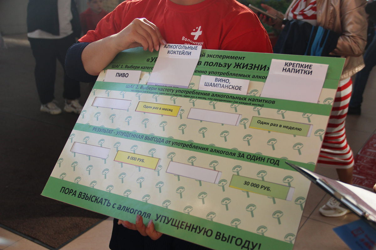 Посетители трех крупных торговых центров Екатеринбурга накануне считали упущенную выгоду от приобретения алкоголя. Все они стали участниками ежегодной интерактивной игры-эксперимента «Урал – выбор в пользу жизни», которую организовали специалисты Областной наркологической больницы при поддержке Администрации Екатеринбурга и движения Волонтеры-медики в рамках Всероссийского дня трезвости.