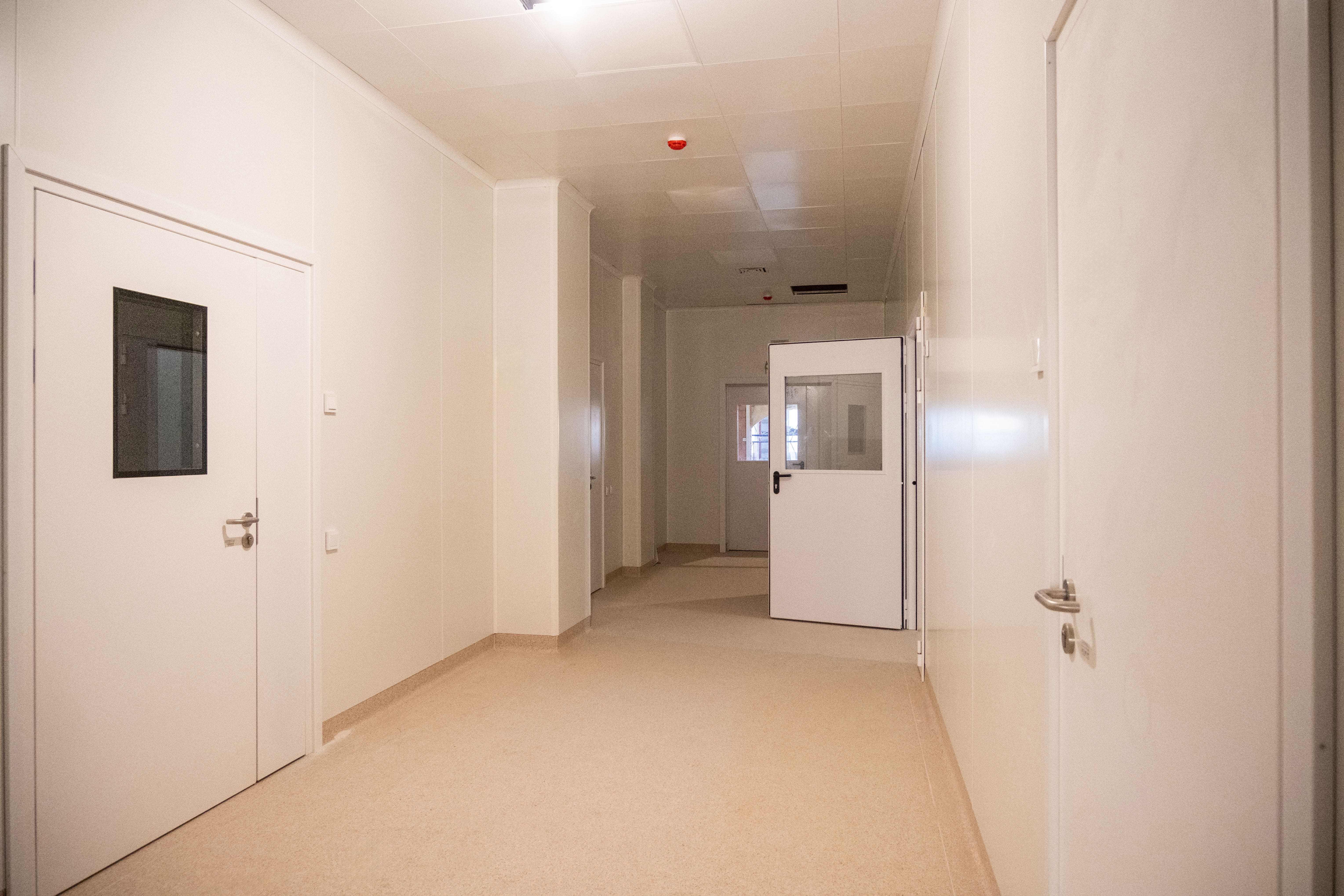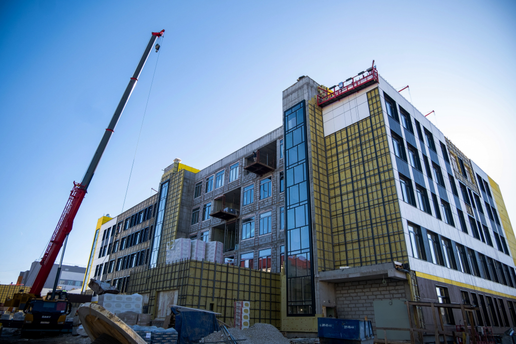 Завершается работа над окнами и витражами. Готовность фасада составляет 82%. Монтаж внутренних инженерных сетей также близок к завершению: водоснабжение и канализация готовы на 78%, отопление и вентиляция — на 86%.