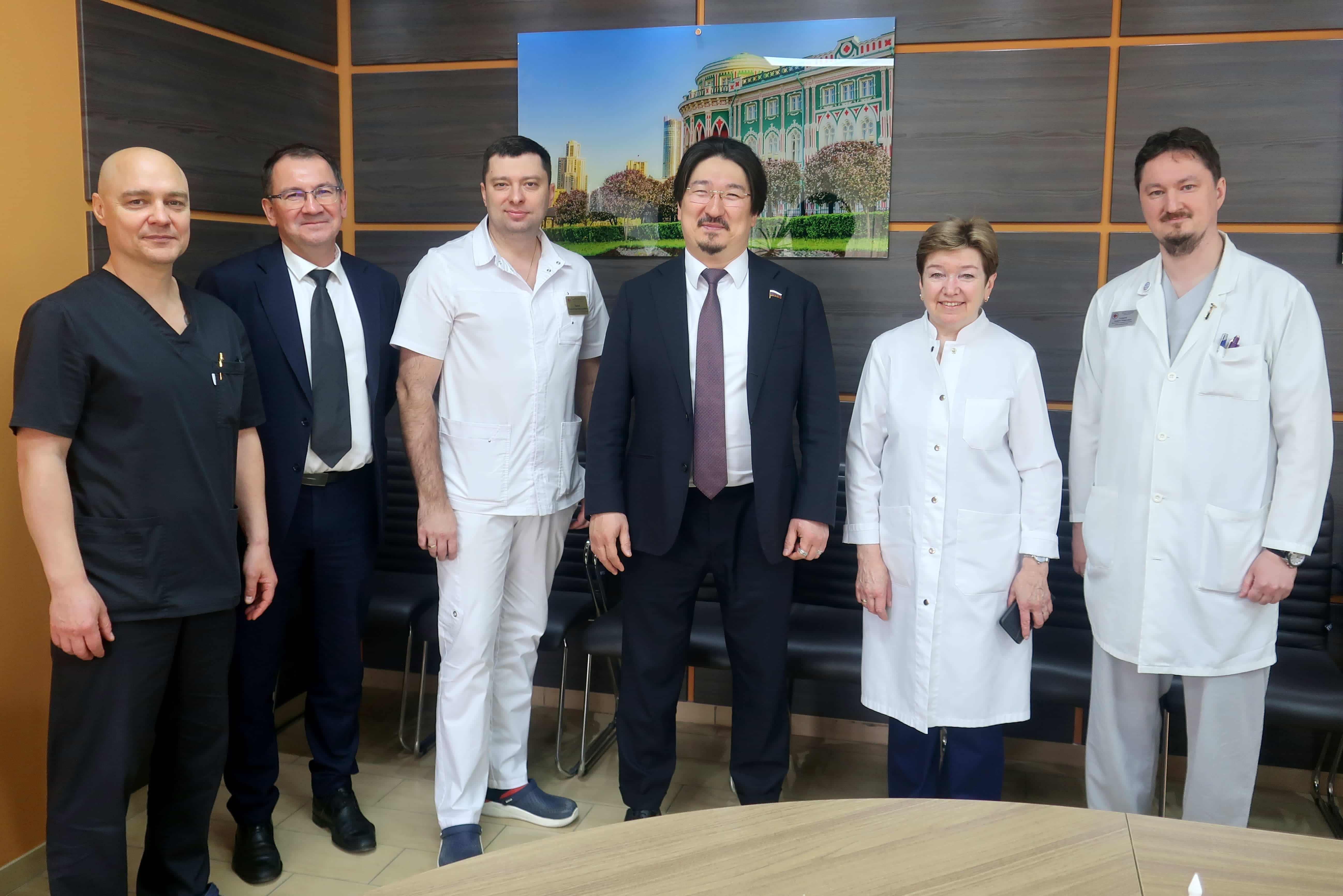 Екатеринбург с рабочим визитом 23 мая посетили первый заместитель председателя Комитета Государственной Думы Российской Федерации по охране здоровья Бадма Башанкаев и представители федеральных медцентров. Гости оценили уровень оказания медицинской помощи пациентам ведущих учреждений здравоохранения Среднего Урала — Свердловского областного онкологического диспансера и Свердловской областной клинической больницы №1. Ещё одним пунктом в рабочей программе стало совещание по профилактике сердечно-сосудистых заболеваний и лечению коморбидных пациентов на территории Уральского федерального округа в рамках национального проекта «Продолжительная и активная жизнь».