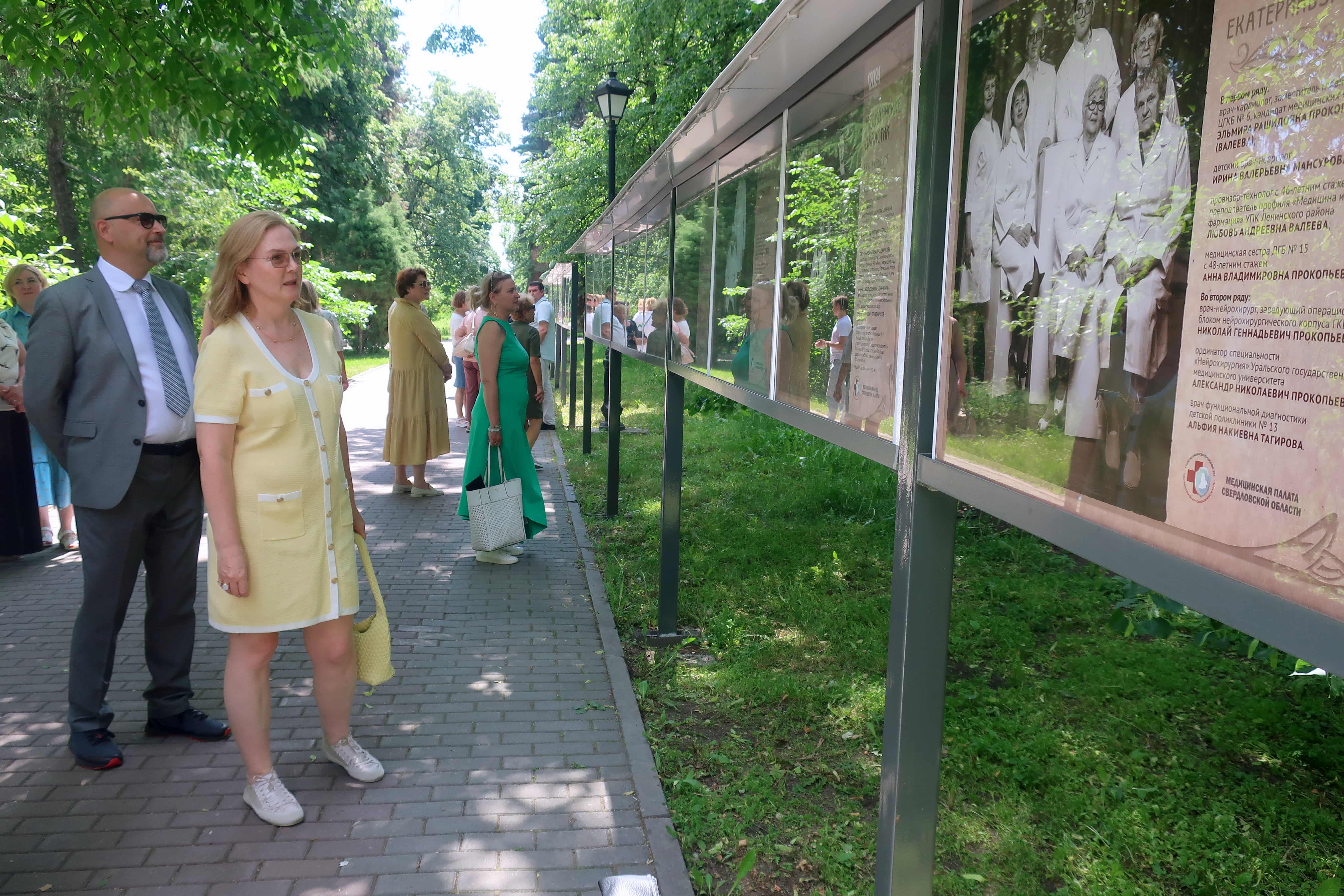 Фотовыставка «Медицинские династии» начала работу 18 июня в свердловском Дендропарке на ул. 8 Марта. Жители Екатеринбурга и гости города, прогуливаясь на свежем воздухе, могут познакомиться с историей семей, представители которых из поколения в поколение передают уникальные знания, умения и желание помогать людям в борьбе с недугами. Героями фотопроекта, реализованного по инициативе Медицинской палаты Свердловской области, стали 34 семьи медиков, трудовой стаж которых насчитывает несколько столетий.