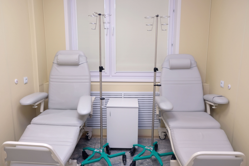 Пациенты дневного стационара Свердловского онкоцентра получают лекарственную терапию в новом комфортном отделении