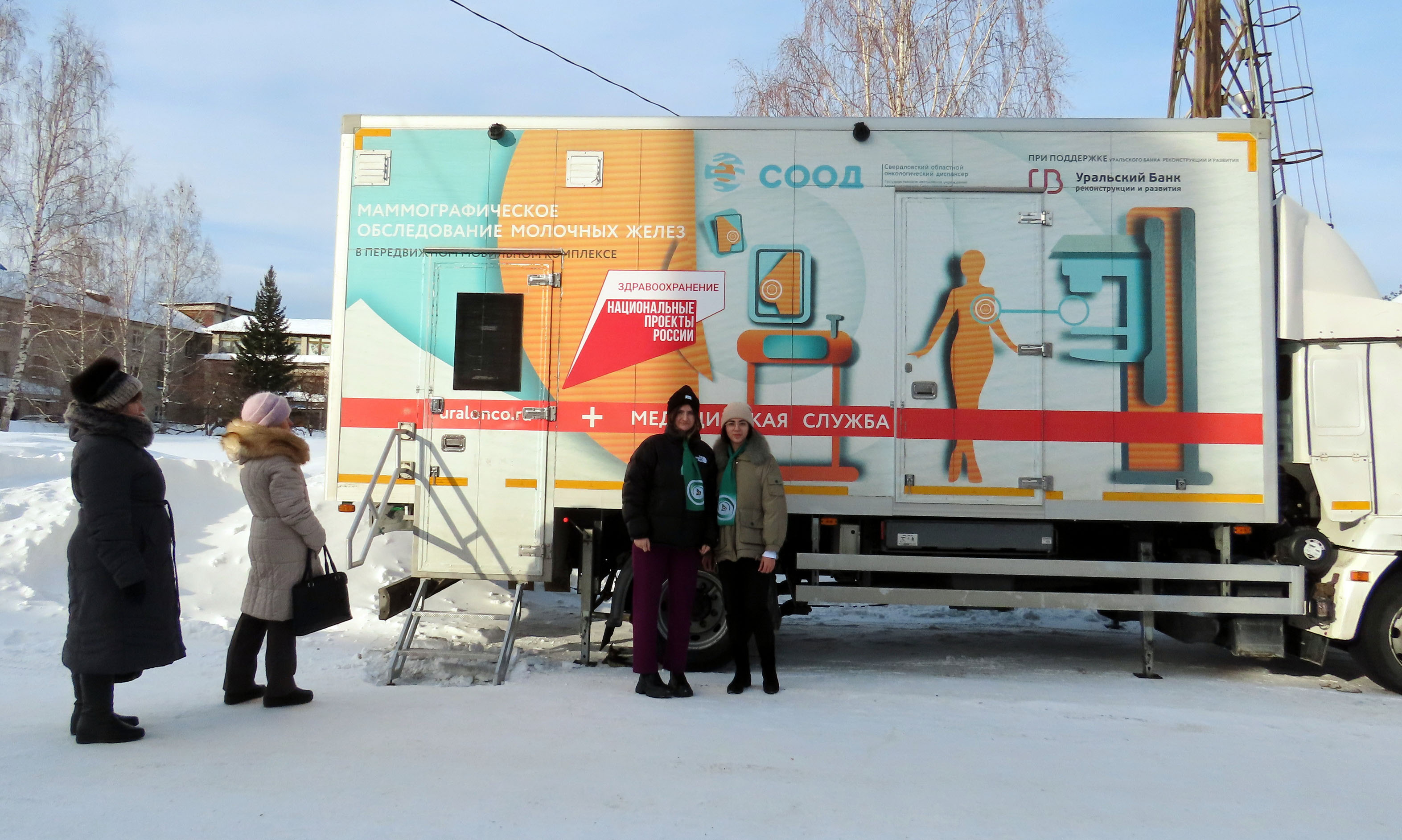 Передвижной маммографический комплекс СООД в 2023 году выполнил 79 выездов в территории региона. В рамках всероссийской акции «Добро в село» медики побывали не только в районных центрах, но и в отдалённых уголках Свердловской области: селе Новопаньшино, посёлке Махнёво, посёлке Лобва. В рамках профилактического проекта регионального Минздрава «Добро на предприятие» диагносты обследовали женщин на рабочем месте.