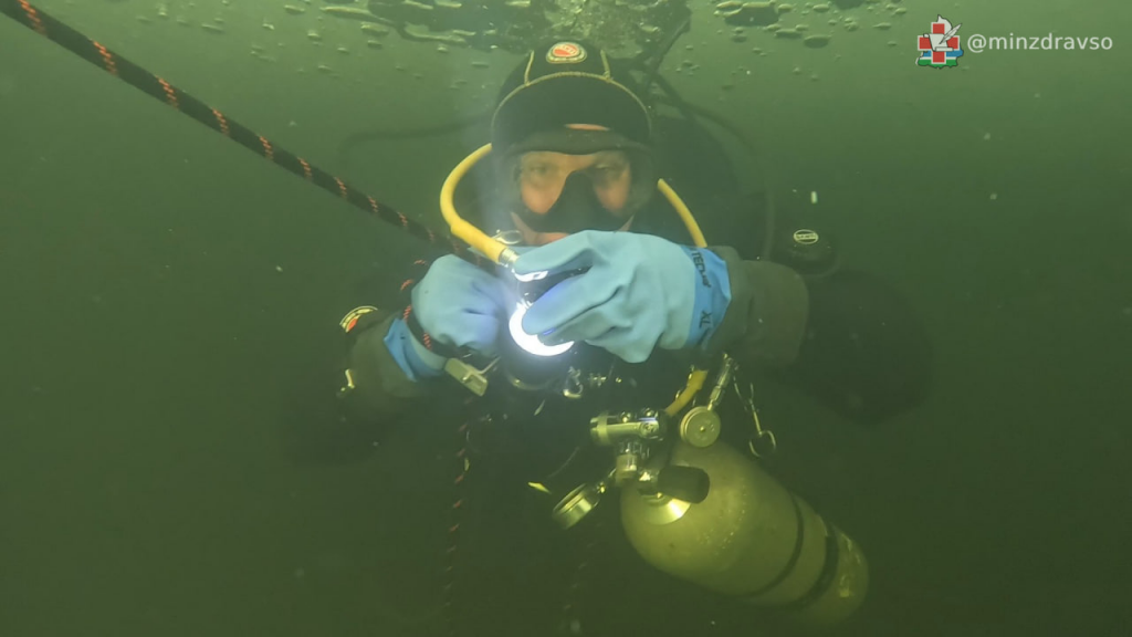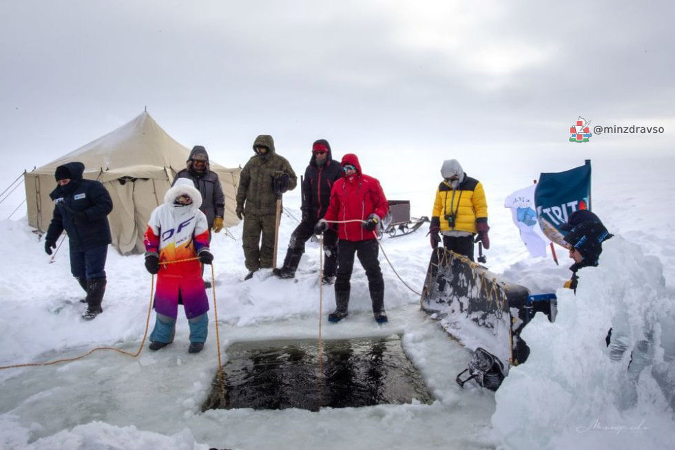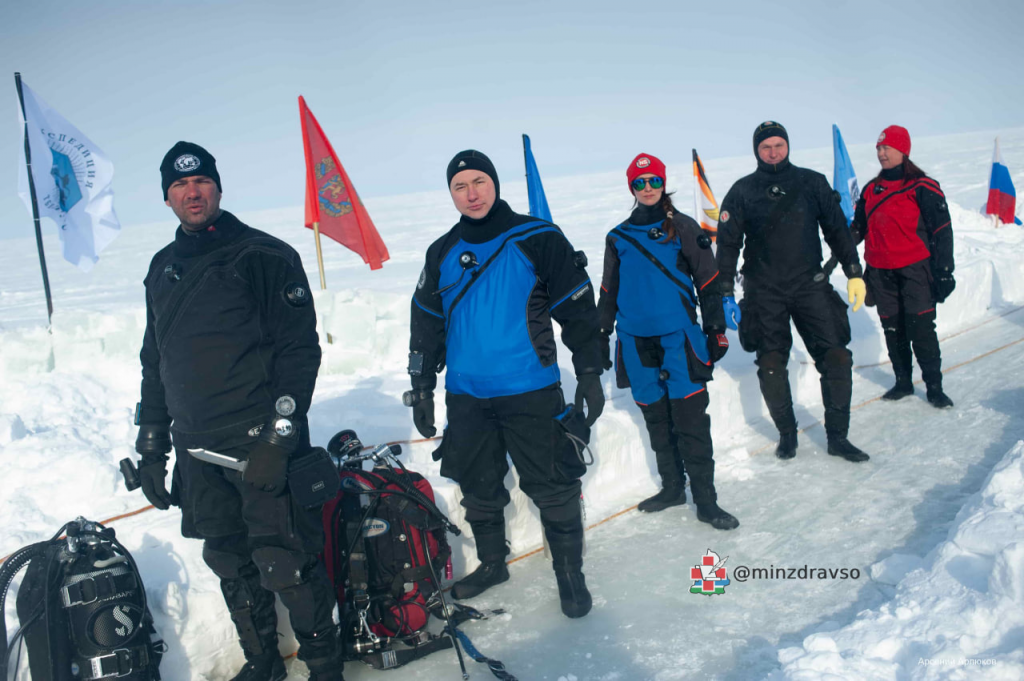 «Арктическая погода нас побаловала: почти все дни было солнечно, отметка термометра держалась на -15-20°C. Температура воды, как и предполагалось, составила -2°C, её текучесть при такой температуре сохранялась за счёт сильного течения и солёности. Снаряжение обледеневало, системы дыхания и плавучести неоднократно переходили во «фрифлоу» — режим неконтролируемой потери воздуха под водой», — пояснил специалист учреждения здравоохранения.